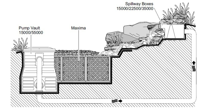 Podzemní rezervoár pro fontány a vodní prvky.