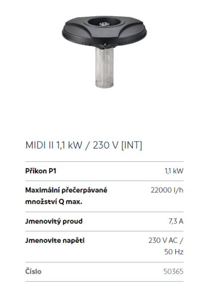 Upřesnění parametrů pro Oase MIDI II 1.1 kW/230V (výkonná fontána s provzdušňovačem)