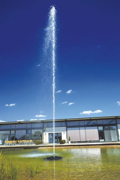 Plovoucí základna umožňuje umístit fontánovou trysku do požadované vzdálenosti na hladinu velkých jezírek, nebo vodních nádrží.