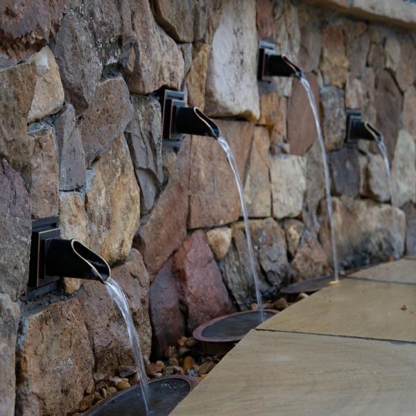 - Formální chrliče stylově vylepšují jakýkoli malý nebo velký venkovní prostor, ať už zabudovaný do zdi, nebo do sloupu. Díky vstupu pro vodu 1½" je lze instalovat i na úzké stěny. Integrovaná okapnička zajišťuje rovnoměrný vodní obraz a zabraňuje zpětnému toku vody. Všechny prvky jsou vyrobeny z robustního masivního bronzu. Geometrický design dekorativně zapadá do každého zahradního stylu. Můžete si vybrat ze čtvercových, elipsových, kulatých a kosočtverečných tvarů. Na přání mohou být chrliče vybaveny LED osvětlením.