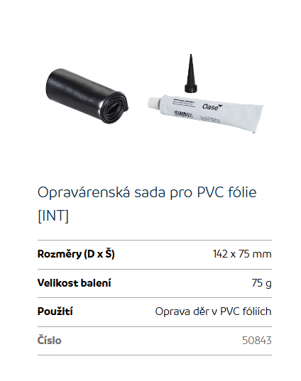 Upřesnění parametrů pro Oase opravná sada na PVC fólie (75g)