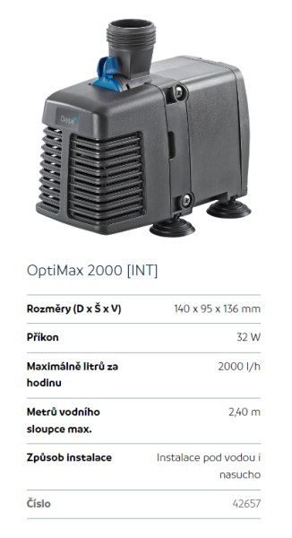 Seznam náhradních dílů na Oase OptiMax 2000 máme uveden pod fotogalerií.