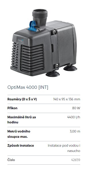 Seznam náhradních dílů na Oase OptiMax 4000 máme uveden pod fotogalerií.