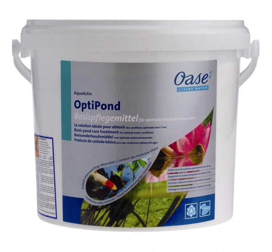 Přípravek Oase OptiPond slouží pro stabilizaci vody v jezírku a vytváří optimální podmínky vody a stabilizuje nejdůležitější parametry. Dešťová voda nebo voda ze studny s nízkým obsahem minerálů je ošetřena v souladu s podmínkami v jezírku. OptiPond stabilizuje uhličitanovou a celkovou tvrdost vody a chrání jezírko před nebezpečným poklesem kyselosti. Váže znečišťující látky, jako je amonium a plynný čpavek. Vyvážený recept je založen na přírodních podmínkách a vytváří rovnováhu důležitých stopových prvků, jako je sodík, draslík, vápník nebo hořčík. Při správném dávkování se uhličitanová tvrdost vody zvyšuje o +1,5°dKH a celková tvrdost o +1,9°dH.