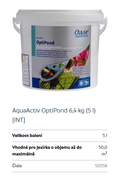 Upřesnění parametrů pro Oase OptiPond - ke stabilizaci vody po dešti (5 l na 50m3)