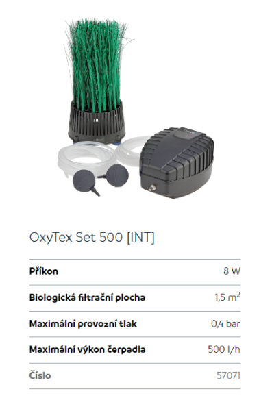 Upřesnění parametrů pro Oase OxyTex Set 500 CWS (provzdušňovací sada na 5m3)