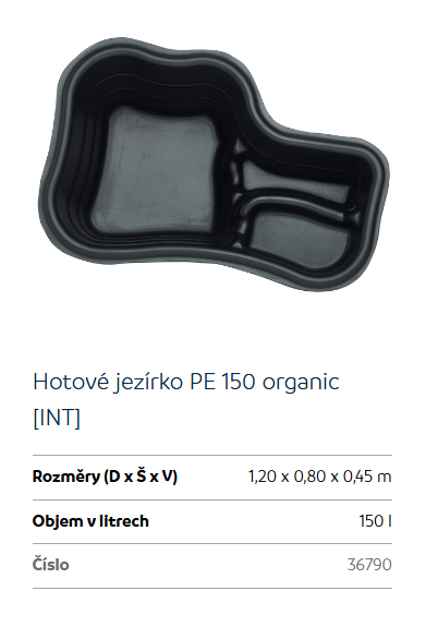 Upřesnění parametrů pro Oase PE plastové oválné jezírko (150L)
