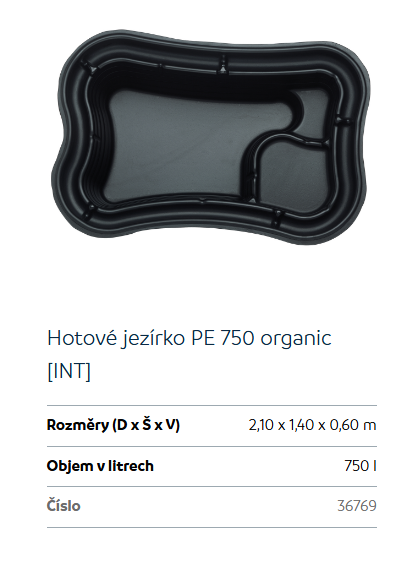 Upřesnění parametrů pro Oase PE plastové oválné jezírko (750L)