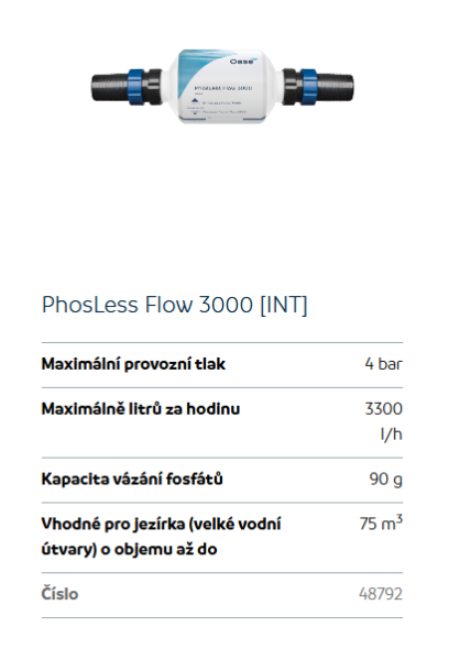 Upřesnění parametrů pro Oase PhosLess Flow 3000 (snížení fosfátů)