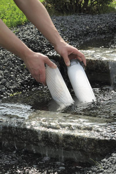 Filtrační náplně ze systému průtokových náplní využívají materiály ukládající fosfáty k rychlému a účinnému odstranění fosfátů umožňujících růst řas z vody v jezírku. Obsah fosfátů je snížen pod limit umožňující růst řas, čímž se zabrání jejich růstu. V případě navýšení množství fosfátů, například v důsledku koupání v jezírku nebo v přírodním bazénu, jsou okamžitě odstraněny. Extra jemné skleněné kuličky na obou stranách a sladěný design náplně distribuují tok vody kolem centrálně naplněného granulátu a zajišťují optimální výsledek uložení. Rychlé a efektivní snížení úrovně fosfátů, která je jednou z hlavních příčin růstu řas.