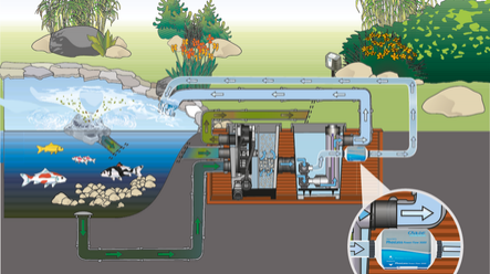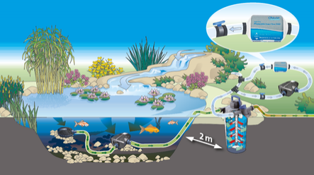 - Ve spojení s 12V čerpadlem lze vytvořit dodatečný filtrační okruh i u koupacích jezírek.