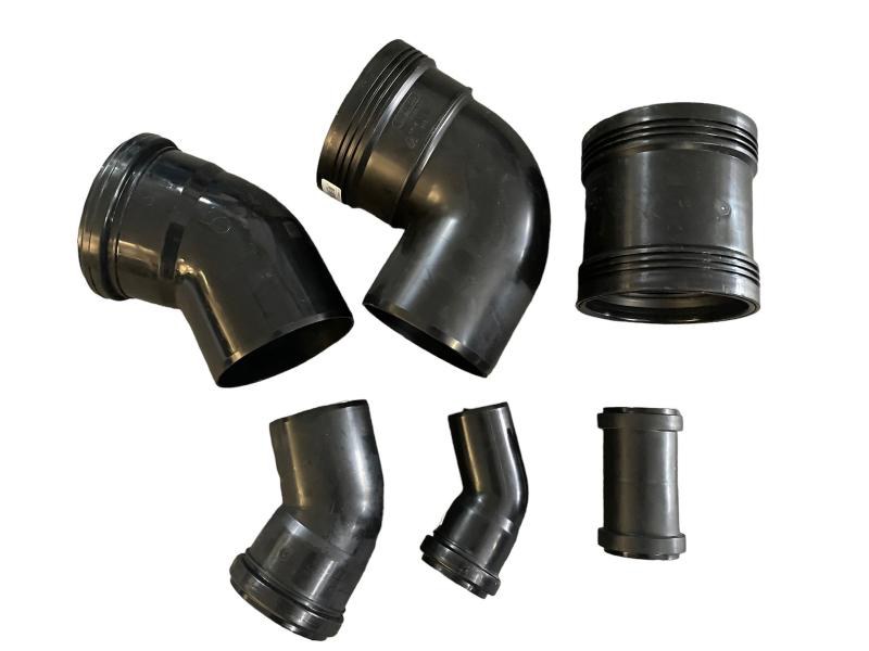 - Černé odvodňovací potrubí a fitinky o různých délkách, průměrech a s různými úhly zajistí bezpečné odvodnění a přímý pohyb vody.