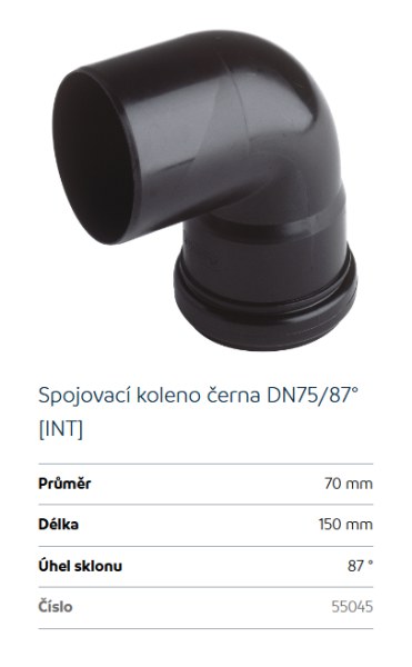Podrobný popisOase černé PP odpadní připojovací koleno.