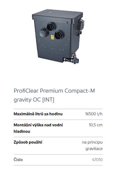 Upřesnění parametrů pro Oase ProfiClear Premium Compact (bubnový filtr/gravitační verze)
