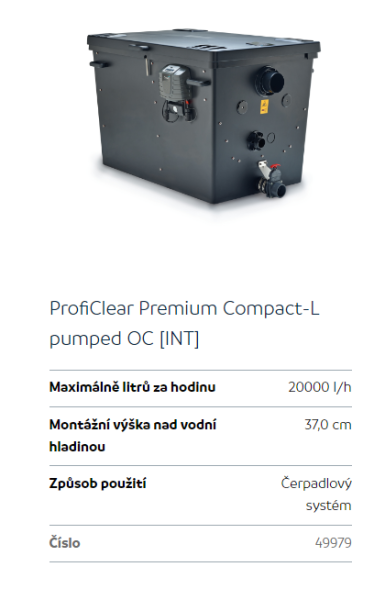 Upřesnění parametrů pro Oase ProfiClear Premium Compact-L (samočistící bubnová filtrace)