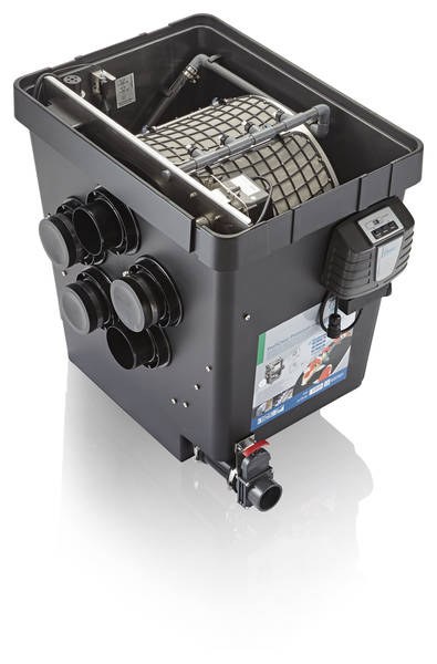 Inteligentní bubnový filtr pro použití v jezírkách s chovnými rybami i koupacích jezírkách pro odstranění nečistot až do 60 mikrometrů.