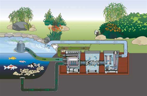 - Inteligentní High-End modulový filtrační systém pro jezírka s osazením rybami a jiná velká vodní díla.