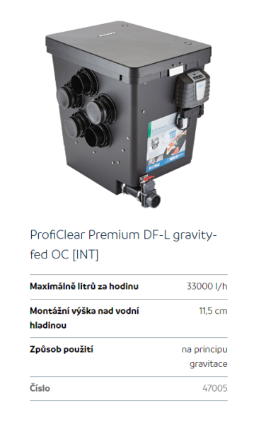 - Optimální odladění na filtrační čerpadla Oase Aquamax Eco Gravity.