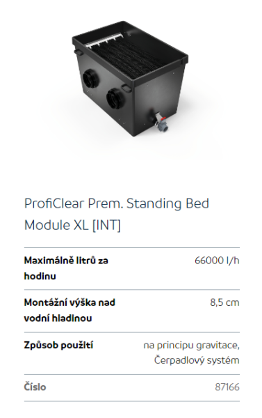 Upřesnění parametrů pro Oase ProfiClear Premium Standing Bed Module XL (modul bubnového filtru)