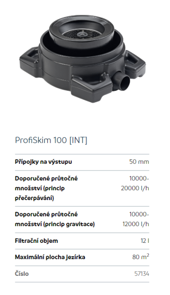 Upřesnění parametrů pro Oase Profiskim 100 (jezírkový skimmer na 80 m2)