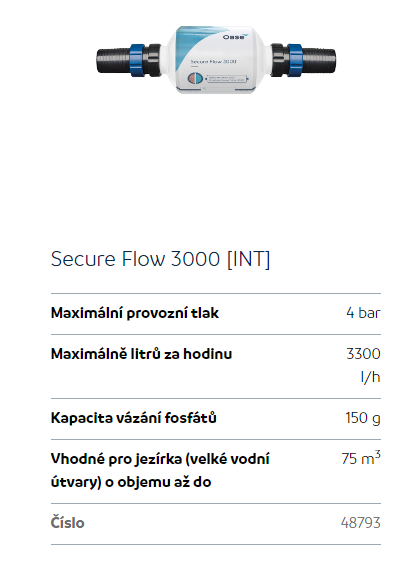 Upřesnění parametrů pro Oase Secure Flow 3000 (pojistný filtr)