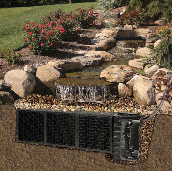 Jednotlivé prvky vodního toku jsou ideálním výchozím bodem pro vodní tok a vodopády s velkým průtokem. Prvky jsou jednodílné odlitky a vyznačují se robustním provedením. Mohou být také zatíženy těžkými kameny, a proto se zdá, že jsou zabudované v přírodním prostředí. Vodní tok můžete doplnit přírodními kameny, které mu dodají přírodní a působivý vzhled. Pomocí příruby pro připevnění fólie snadno a bezpečně připevníte jezírkovou fólii k zadní části zdrojů vodního toku, aby vodnímu toku nic nestálo v cestě – ani těm s velkým průtokem.