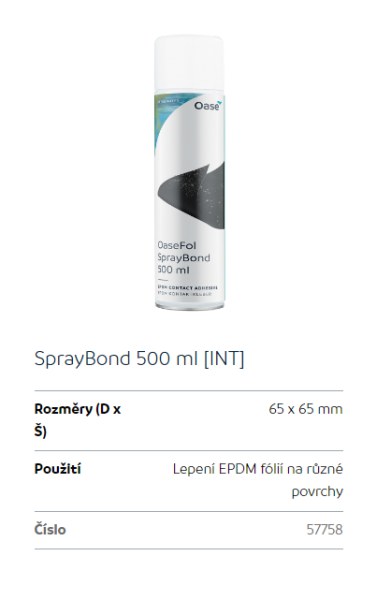 Upřesnění parametrů pro Oase SprayBond - lepidlo na EPDM fólie (500ml)
