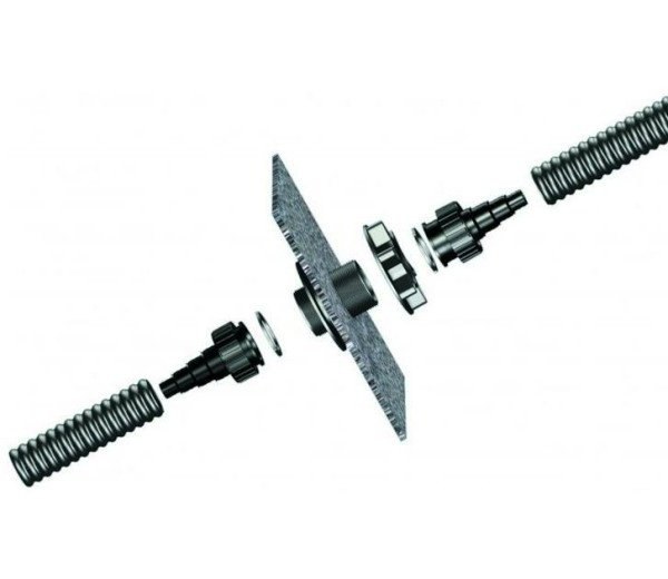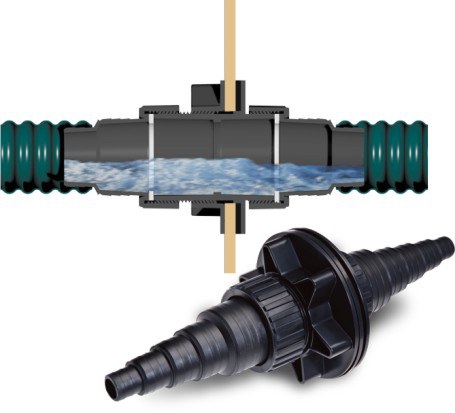 V závislosti na verzi zástrčka na obou stranách a příruba na fólii nebo příruba na fólii s jednou částí trubky. Všechna pouzdra jsou extrémně odolná a svařitelná s jezírkovou fólií.