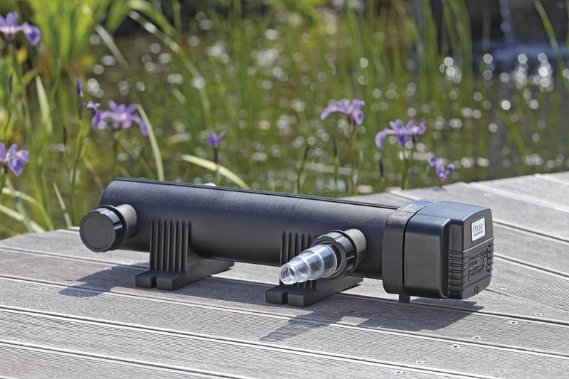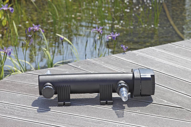 - Průzračně čistá voda v jezírku díky UVC záření.