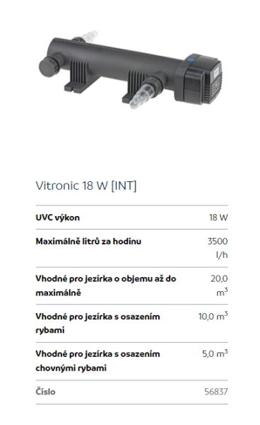 Upřesnění parametrů pro Oase Vitronic 18W UV-C lampa (na 6m3)