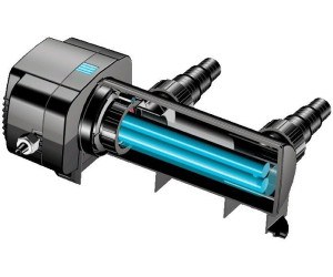 - Čistá, průzračná voda v jezírku díky UVC záření.