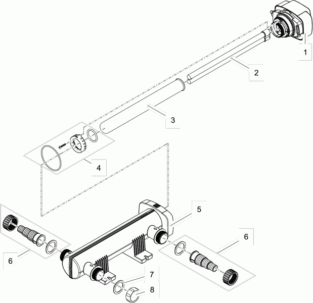 - UV lampu s hadicí od čerpadla propojte pomocí hadicových trnů nebo šroubení.