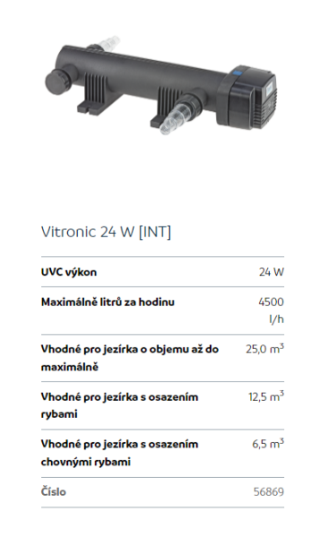 Upřesnění parametrů pro Oase Vitronic 24W UV-C lampa (na 8m3)
