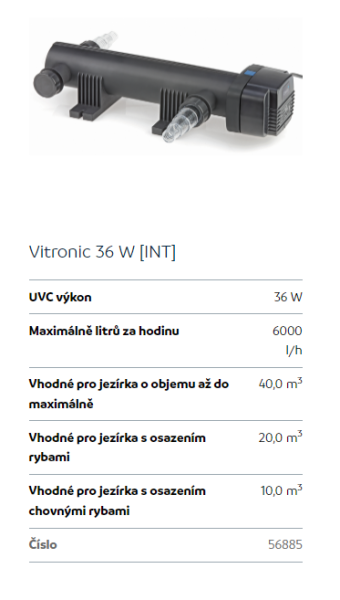 Upřesnění parametrů pro Oase Vitronic 36W UV-C lampa (na 12m3)