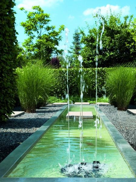 - Vodní prvek Water Quintet má pět fontán a osvětlené trysky, které mohou být naaranžovány samostatně. Je možno měnit výšku fontán a intenzitu osvětlení. Tyto vlastnosti jsou předem naprogramovány a lze je při nezacloněném výhledu snadno navolit pomocí dálkového ovladače na vzdálenost až 80 m. Měnící se výšky fontán mezi 30 a 140 cm vytvářejí působivý vodní prvek s výškově nastavitelnými tryskami. Díky našemu konceptu plug-and-spray je instalace snadná. Díky bezpečné 12V technologii mohou být vodní prvky Water Quintet použity také v koupacích jezírkách.