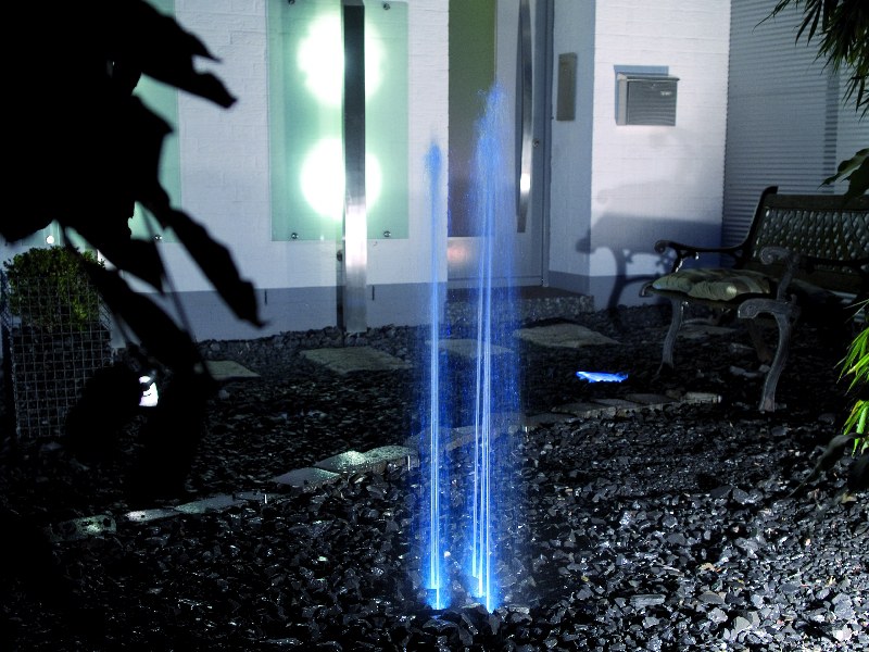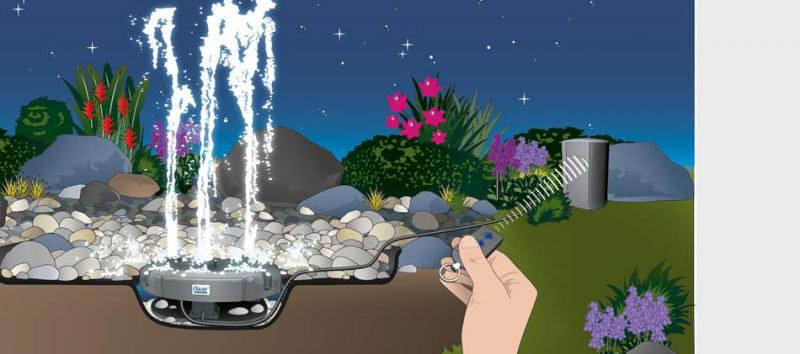 - Dálkově ovladatelná vodní hra s proměnlivými fontánkami a bílým LED osvětlením.