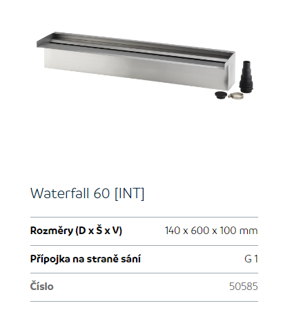 Upřesnění parametrů pro Oase Waterfall 60 (nerezový vodopád)