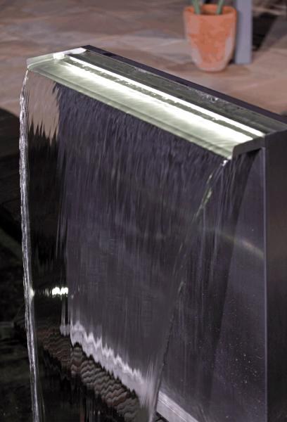 Ozdoba každého vodopádu: LED osvětlení, které lze snadno nainstalovat díky vysoce kvalitním plastovým sklíčkům, plus elegantně tvarovaná ochrana proti stříkající vodě – ideální pro formální architektonický nádech. Vyrobeny z pevné nerezové oceli.