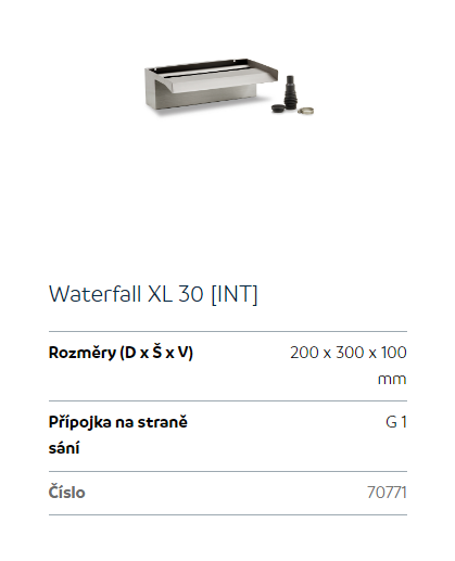 Upřesnění parametrů pro Oase Waterfall XL 30 (nerezový vodopád)