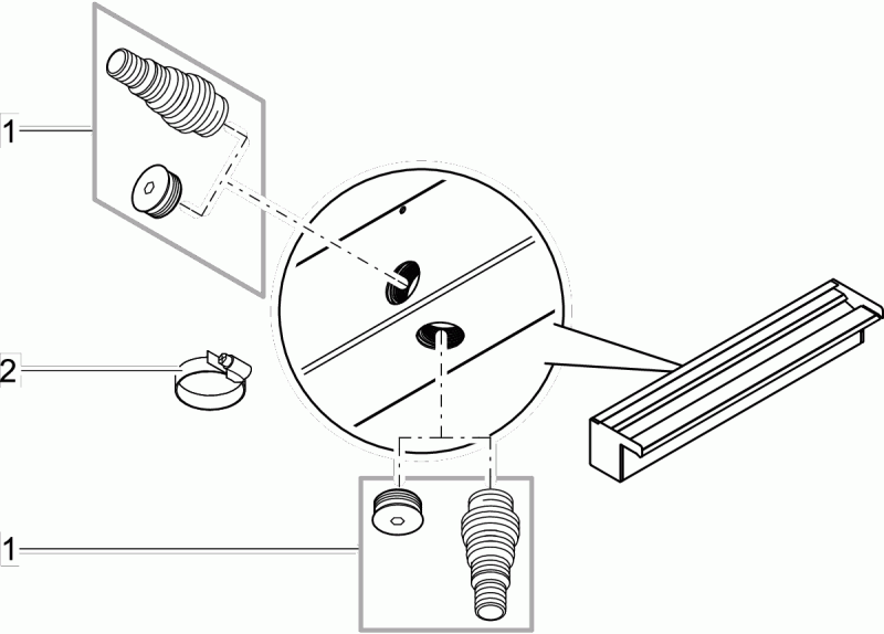 Součástí dodávky je hadicový trn s vnějším závitem 1 ¼“ a připojením na hadice 19, 25, 32 a 38 mm, hadicová spona a ucpávka na jeden ze vstupů.