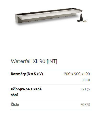 Upřesnění parametrů pro Oase Waterfall XL 90 (nerezový vodopád)