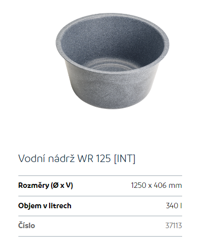 Upřesnění parametrů pro Oase WR125 fontánová kulatá nádrž (Ø125 x hl.40,6cm)