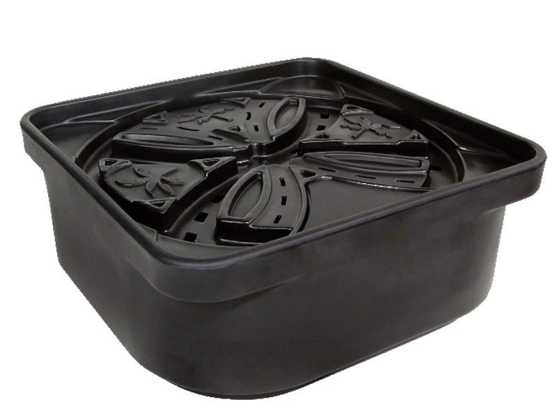 Neviditelná nádrž, mimořádně pevná základna pro instalaci vodního prvku bez jezírka. Konstrukce je rychlá a jednoduchá. Prostorově úsporné provedení je tudíž ideální pro zahradu nebo terasu. Díky drážkám na horní straně mohou být hadice uloženy bez překážek a bez zalomení. Přístup k čerpadlu umožňuje snadnou údržbu. Vysoké užitečné zat??žení umožňuje vodní prvky s více vyvěracími kameny nebo těžkými kameny.