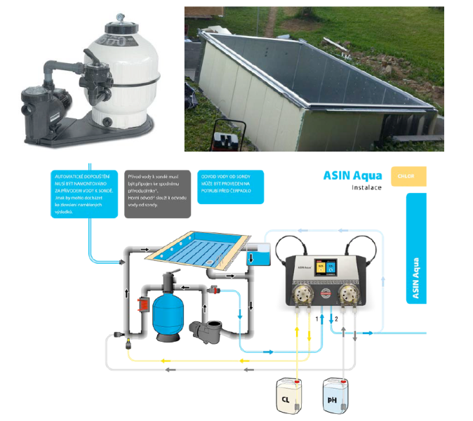 • Skimmer: filtrační jednotka vč. propojení s technologií