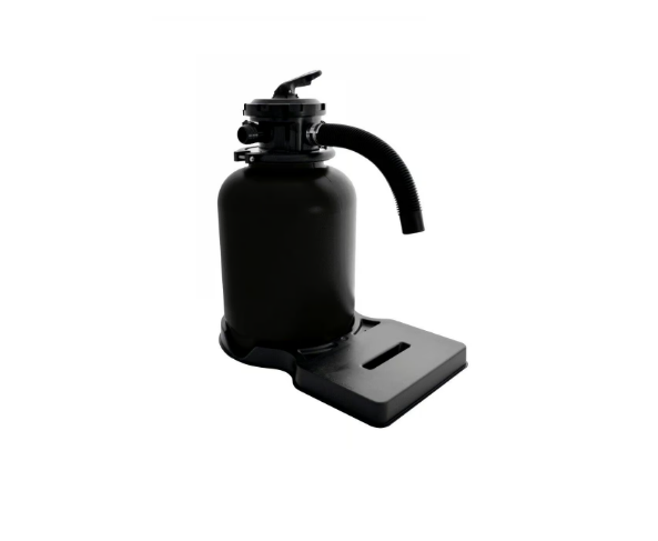 Písková filtrace pro nadzemní bazény je vybavena základovou deskou, na níž je umístěna polypropylenová filtrační nádoba s 6-ti cestným top-ventilem s manometrem.