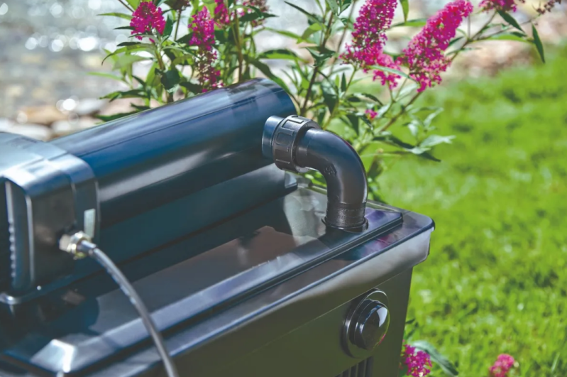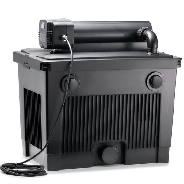 - Výkonný průtokový filtr s UV lampou pro zahradní jezírka a jezírka s rybami o velikosti 4,5m3. Kombinace filtrační pěny a integrovaného UVC zářiče zajišťuje nejlepší výkonnost filtrace. Různé filtrační pěny zajišťují optimální mechanickou a biologickou filtraci. Pro čištění má průtokový filtr páky pro stlačení nečistot z filtračních pěn, spodní odtok a připojení pro výplach.