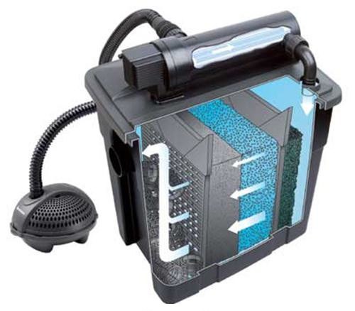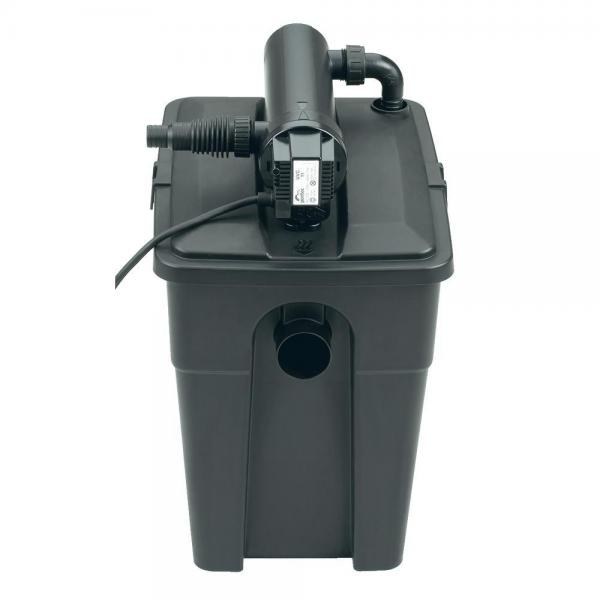 - Připravený k připojení a kompletní. Tento kompaktní průtokový filtr zajišťuje zaručeně průzračně čistou, zdravou a čistou vodu ve Vašem jezírku. Integrované UVC čisticí zařízení účinně eliminuje výskyt rozptýlených řas a zakalení vody.