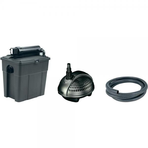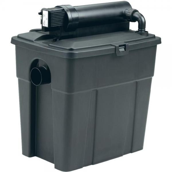 - Připravený k připojení a kompletní. Tento kompaktní průtokový filtr zajišťuje zaručeně průzračně čistou, zdravou a čistou vodu ve Vašem jezírku. Integrované UVC čisticí zařízení účinně eliminuje výskyt rozptýlených řas a zakalení vody.