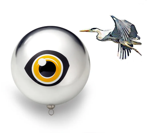 Reflexní koule s okem dravců ruší volavky a ostatní ptactvo a chrání tak obyvatele rybníka.