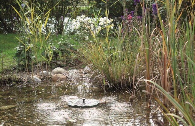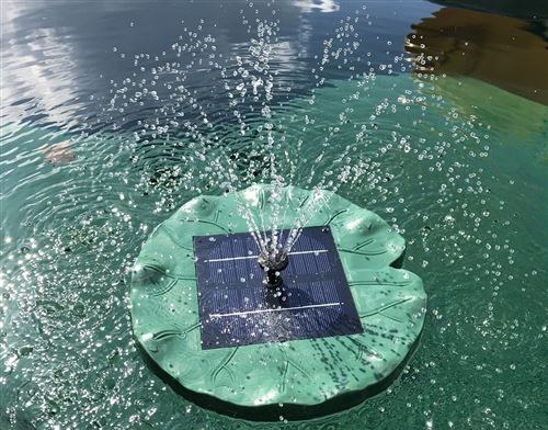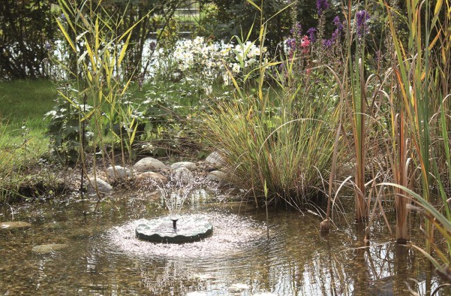 Plovoucí a bez připojení k napájení solární fontána PondoSolar Lily Island dobývá vaše jezírko. Obzvláště praktický je integrovaný solární panel, který zásobuje vodní prvek elektřinou. To je poutavý v každém ohledu, protože lze dosáhnout až 30 cm vysokých fontán, které pak padají na plovoucí tělo v organickém tvaru listu. Součástí dodávky je kromě 6V vodního čerpadla se 150 l/h také solární panel s 1,4 W.